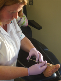 Minor skin surgery is sometimes required to eradicate some of the more painful, serious foot pathologies under local anaesthesia such as toe nail removal or skin lesion removal. |